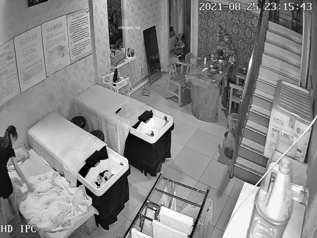 #抄底 纹身墨镜少妇包臀裙无打底黑内