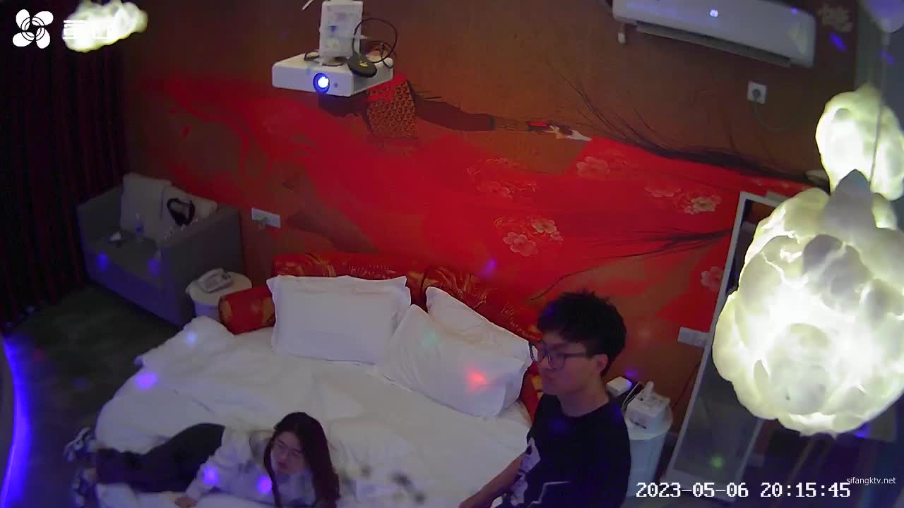 5.6新台首发萤石云酒店红色圆床投影房偷拍眼镜大学生情侣开房过夜找上睡醒来一炮